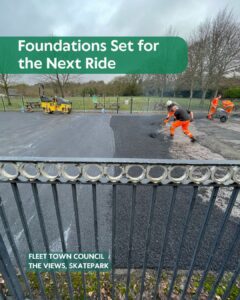 The brand‑new skate park is being constructed and scheduled for installation 23rd March – 11th April with a grand opening Spring 2026, promising a thrilling space for cruising, tricks, and community fun in Fleet.